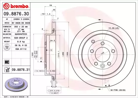 - BREMBO Тормозной диск 09.8876.31