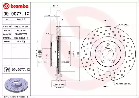 - BREMBO Тормозной диск 09.9077.1X